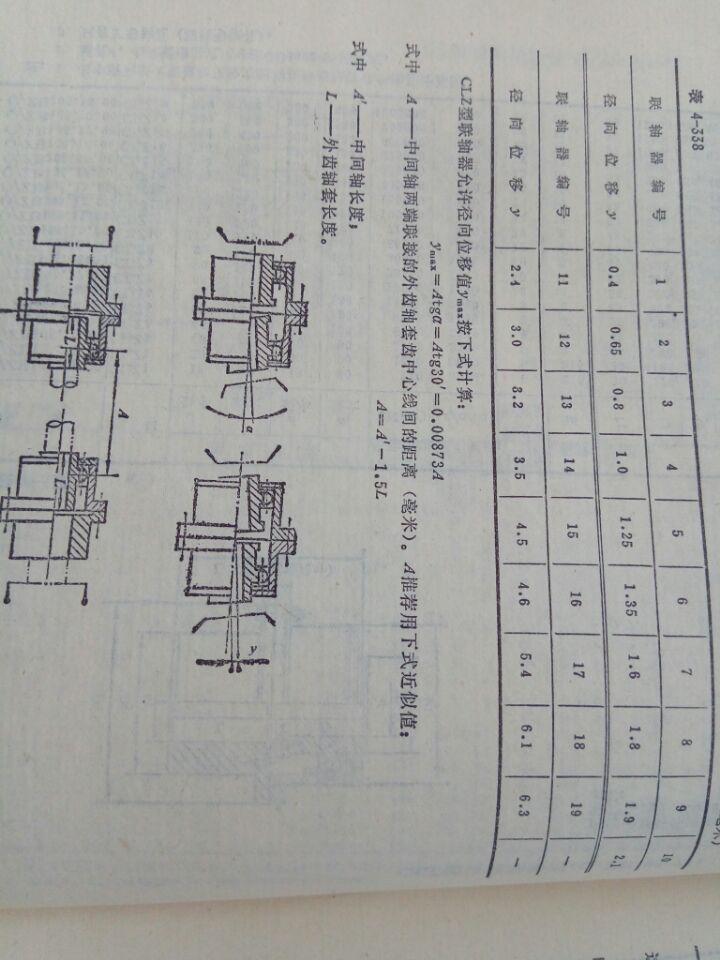 8.當(dāng)兩軸線無歪斜時,CL型聯(lián)軸器允許徑向位移y值見表4-338.